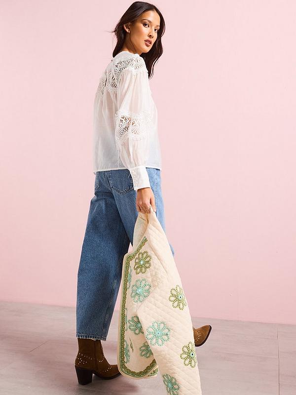 Inject timeless elegance into your new season blouse edit with this stunning piece from V by Very, featuring delicate broderie detailing and voluminous balloon sleeves, it's the perfect pick to add sophisticated style to your everyday wardrobe.