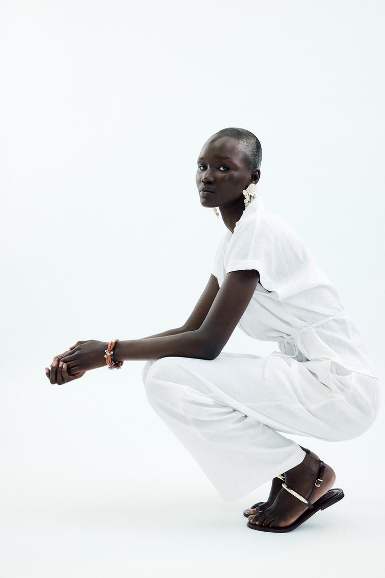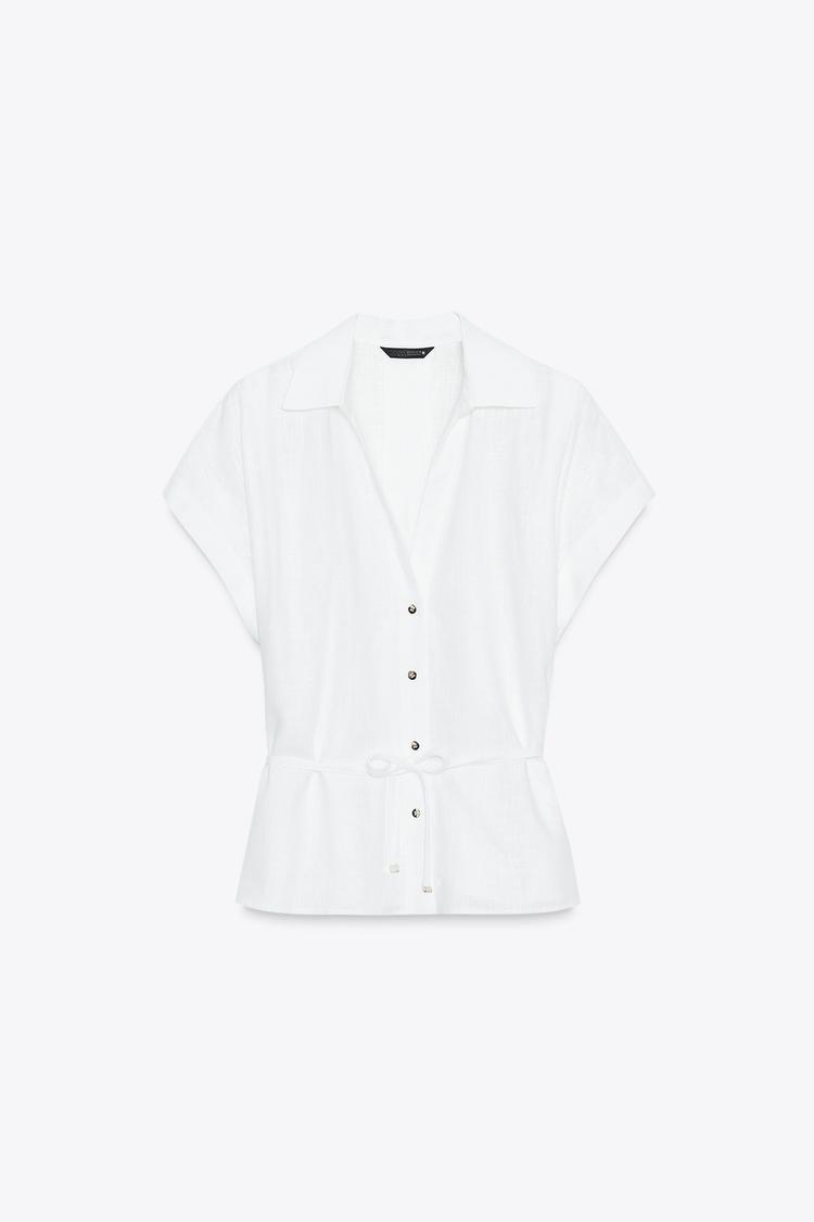 Zara Belted Linen Blend Blouse